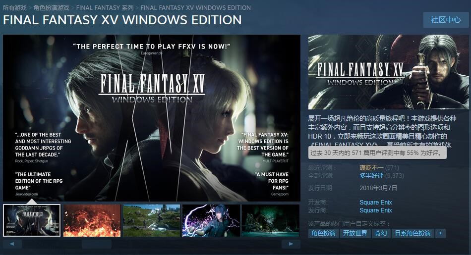 之前SE宣布游戏总监田畑端离职,《最终幻想15》除艾丁之外的三款DLC全部取消制作,PC版也停止开发。这让期盼新内容的玩家愤怒无比,为发泄不满,许多人跑到《最终幻想15》Steam评论区刷起了差评。