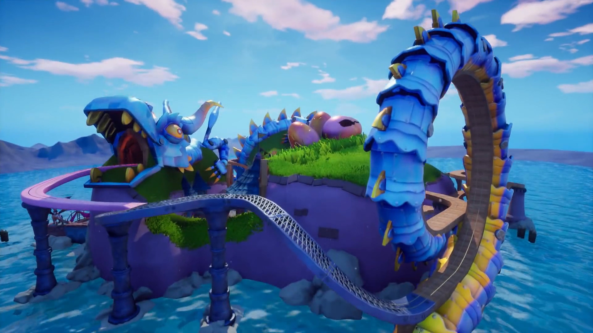 本次视频展示的是名为Dragon Shores的关卡。在这里,我们的主角紫龙斯派罗可以驾驶过山车收集气球、用棒球打靶等,不过这个给龙准备的主题乐园需要800个宝石和55个宝球才能进入。