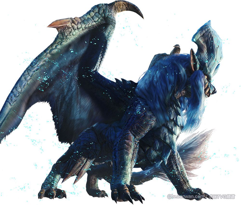 炎妃龙身上缠绕着粉尘,能唤来蓝色业火的稀少雌性古龙。与炎王龙成对,曾有人目击两者共同行动。