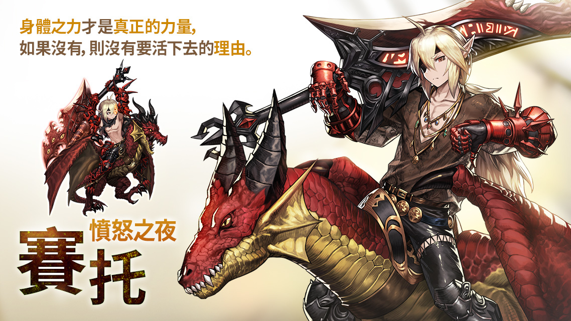 【忌妒之夜-莱维亚】是给予敌人压倒性固定伤害的魔法型佣兵,可使用先前被禁止的古代魔法。 【傲慢之夜-卢修斯】是从堕落天使复活成强而有力恶魔的防御型佣兵,具有复活后免受敌人所有伤害的能力。支援型佣兵【执着之夜-贝里阿斯】会赋予团队一定的生命力并使其复活成亡者。 【愤怒之夜-赛托】具有强力的身体之力,是在攻击、防御时,皆能给予敌人固定伤害的攻击型佣兵。 【忌妒之夜-莱维亚】与【傲慢之夜-卢修斯】可用传说契约的方式获得,而【执着之夜-贝里阿斯】与【愤怒之夜-赛托】则是使用古代铸币获得。