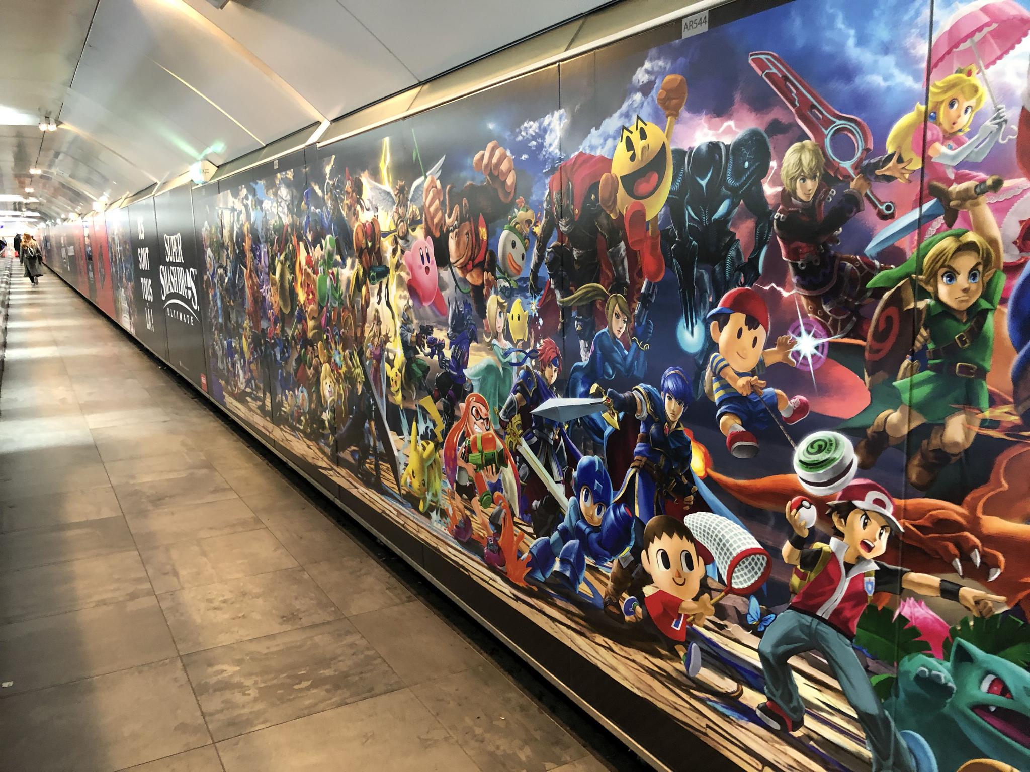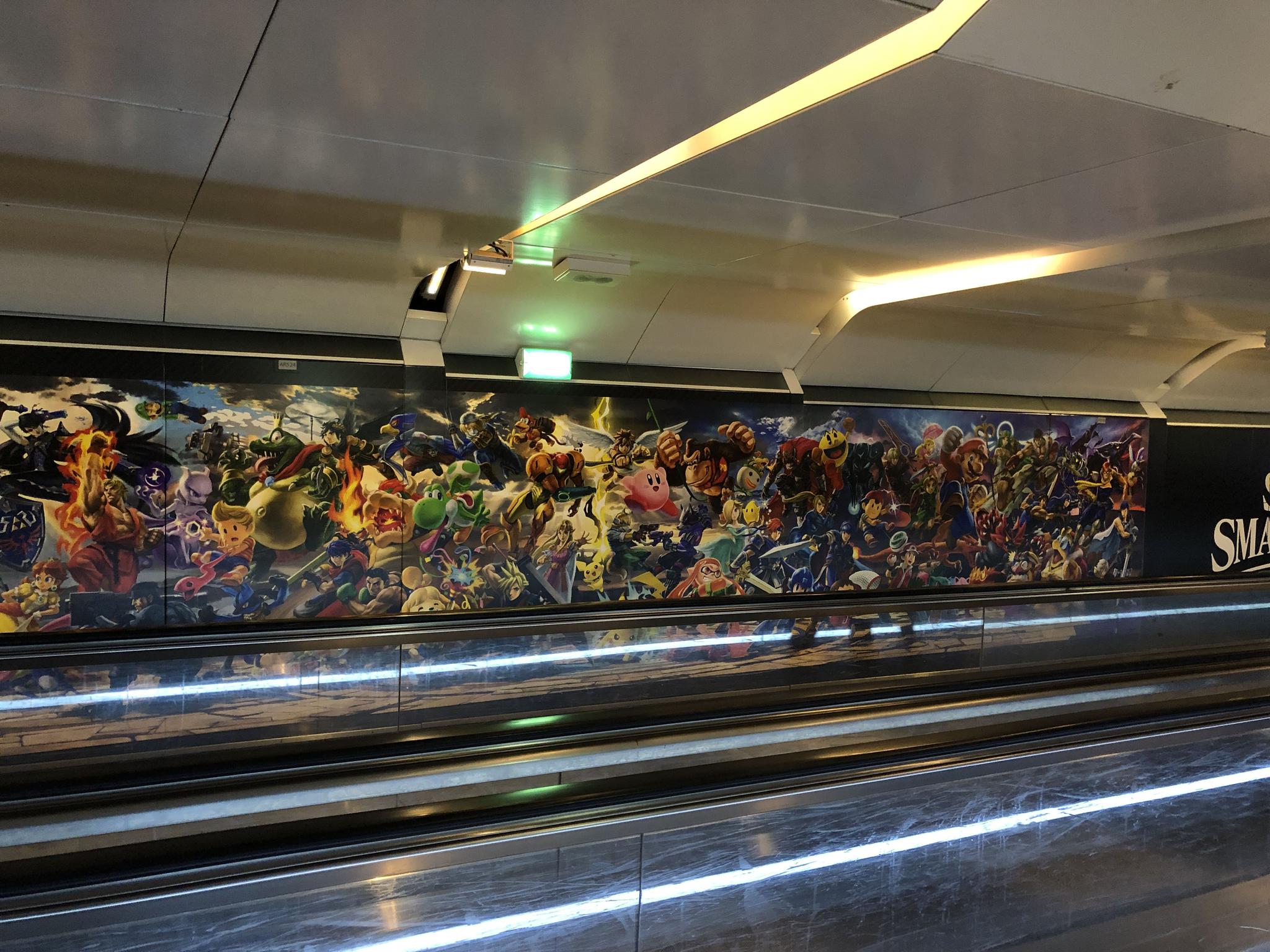 如下图,这是任天堂在法国巴黎夏特雷地铁站进行的宣传广告,整个长廊都贴满了《任天堂明星大乱斗特别版》的宣传海报。两边都有,这下想不注意都难啊。