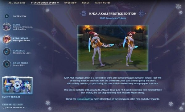 第二个活动则是K/DA阿卡丽的至臻豪华版皮肤,看起来设计师打算推出更多的至臻豪华版皮肤,在之前的测试服消息中,玩家已经见过了这款阿卡丽新皮肤的特效了。而美服官网的最新消息也是确认了,阿卡丽的这款新皮肤无法通过购买入手,从12月7日到2019年的1月21日,玩家可以通过获得冰雪节代币来解锁K/DA阿卡丽至臻豪华版的皮肤。解锁的价格是1800个冰雪节代币,相比K/DA卡莎至臻豪华版皮肤需要2500个代币而言,还是更容易达成目标。