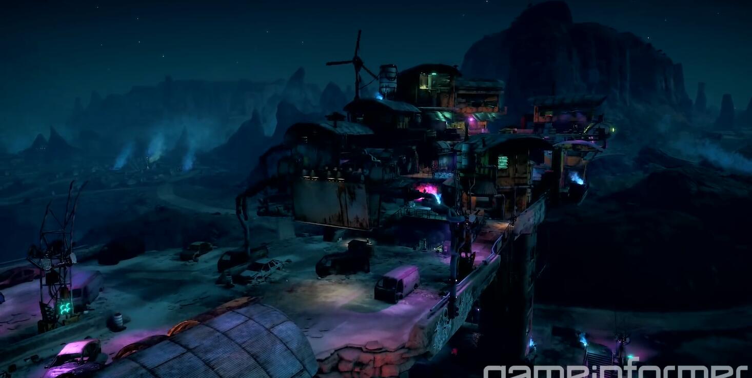 在大多数人的印象中,废土环境的世界是冰冷的,惨淡的,充满着无机质的单调。但是《狂怒2》就要打破这一桎梏。游戏里大胆的运用鲜明的色彩,泼墨般的给植被、工程、霓虹灯甚至武器上色,给人带来了个性的视觉冲击。相信真正玩上手的时候也能令人大呼过瘾。