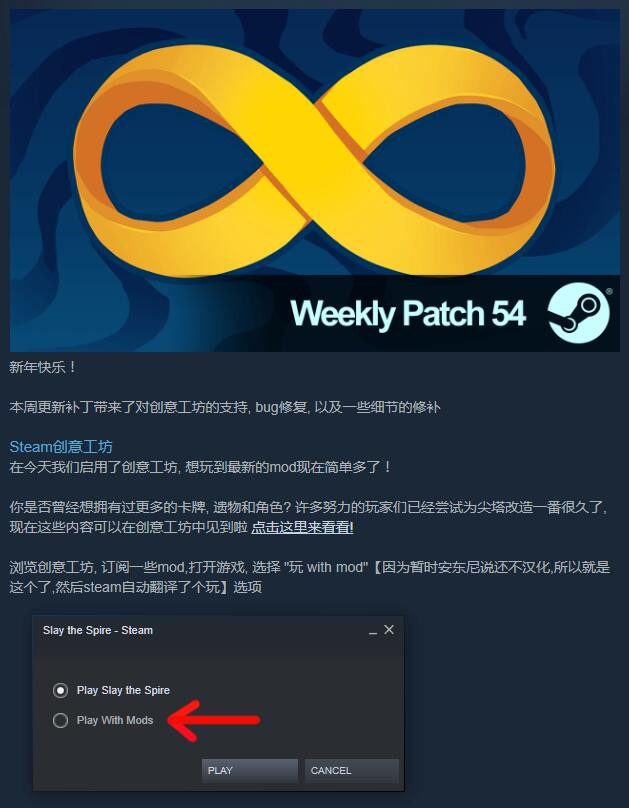 游戏的创意工坊由于刚刚开放,目前仅有32款MOD,内容则涵盖了新卡牌、新事件、新BOSS等等。对于喜欢这款游戏的玩家来说,这无疑是一个超级喜讯,这意味游戏内容可以无限的拓展,再也不会有枯竭的时候。