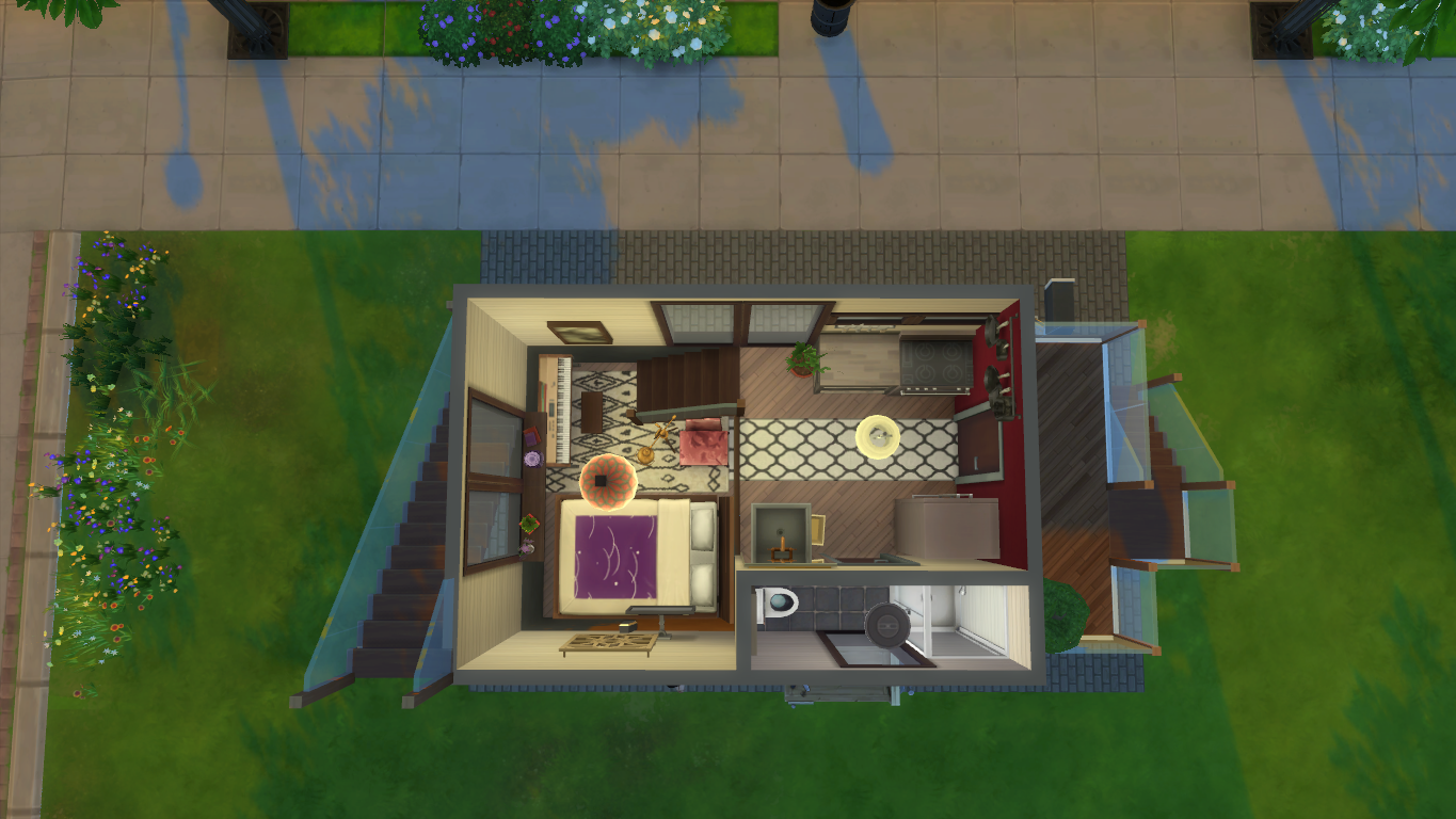 造小房子的乐趣可能在于巧妙设计的挑战。《模拟人生4》给我们提供了许多复杂精细的建造工具,但大房子豪宅都已经司空见惯,真正有挑战的是在最小的空间里实现全部生活功能,甚至容纳两口人同时居住。挑战是让《模拟人生》玩家群体始终留在游戏中的动力——限定预算、限定颜色、限定空间以后的建筑挑战往往更能展现设计师的能力。