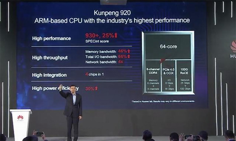 今日华为董事会董事、战略Marketing总裁徐文伟在深圳宣布,推出“业内性能最高”的基于ARM架构的7nm服务器处理器——鲲鹏920(kunpeng 920),专为大数据处理以及分布式存储等应用而设计。
