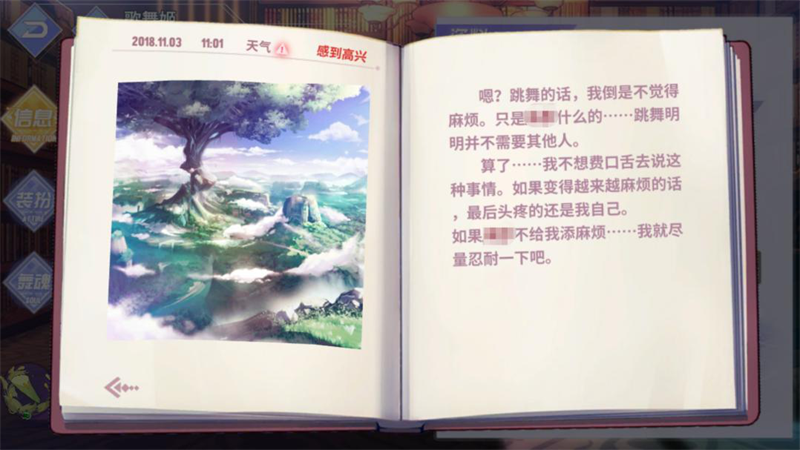 此外,每个歌舞姬还有一个日记本,在游戏中触发了某些事件和行为的时候,她们就会写日记来记录相应的心情感受。