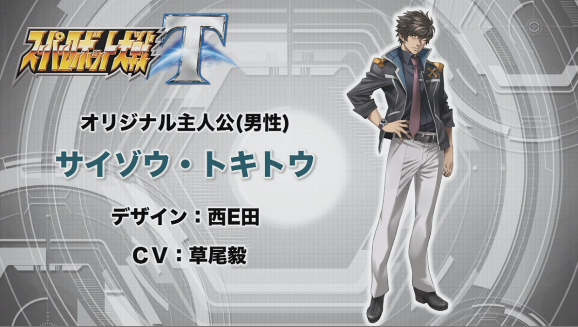 男性原创角色名叫Tokitou Saizou,设计师西E田,配音草尾毅, 他是VTX联合公司的特殊行动第三组的普通职员。外观十分平凡。据介绍,Tokitou与一般的热血男主角比起来总是显得有点疲惫,他的年龄比一般的《超级机器人大战》主角都老。而且他也有着成年人的波澜不惊的态度。