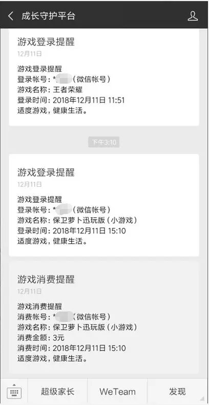 随着期末考试的结束,小朋友迎来寒假。今天腾讯游戏官方宣布,从1月9日开始,成长守护平台全面接入微信小游戏,家长可以及时了解到未成年人游戏及消费动态,开发者也可根据2018年4月25日发布的防沉迷接口提示用户合理、健康的控制游戏时间。