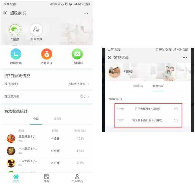 家长可以在“成长守护平台”快速绑定孩子的微信号,了解未成年人的游戏状况,如果发现未成年人在特定的时间段登录游戏,影响正常学习生活,家长还可以使用“一键禁玩”功能,将他“踢下线”。