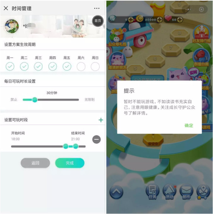 而这个特定时间段是指,家长借助守护平台上提供的多样化游戏管控工具,递进式地帮助未成年子女约束过度沉溺的行为,比如设置未成年人游戏时段、时长功能,以及管控未成年人在游戏上的支付金额。此外,家长可以在成长守护平台上查询未成年人的游戏名称、登陆情况和消费信息,全方位了解未成年的游戏情况。