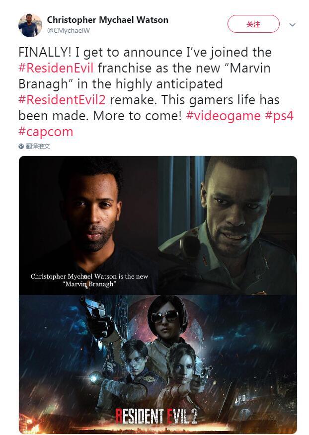 近日这位美国演员也推特上公开自己参与了《生化2》中里昂的配音、体型、脸模制作,并表示他也是《生化危机》系列的粉丝。