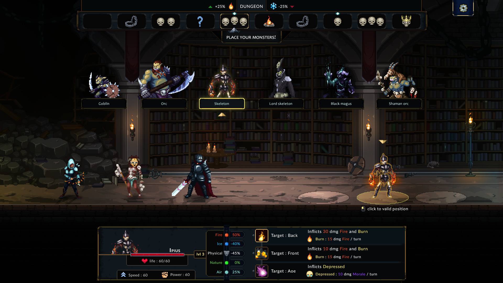 游戏中,每位玩家的每一次游戏进程都会有所不同,但每一次的游戏都会为你留下一些积累。首先,玩家必须针对一组冒险者来设计自己的防守。检查他们的属性和抗性,然后放下最合适的陷阱和怪物来击败他们!当你觉得自己的地牢已经准备就绪,就让他们放马过来!