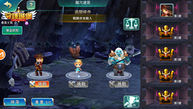 在《守护城堡》中除了常规的剧情关卡,游戏中还拥有各具特色玩法内容。在【远古魔阵】中玩家可以闯关冲塔感受在无尽挑战中登顶排行榜首的快感。 【王国金库】可以击杀偷盗黄金的怪物抢夺金钱作为奖励。 【心魔挑战】可以和自己麾下的英雄进行对决,让英雄们战胜自我提升的战斗力。 【邪灵魔窟】可以进行团队 PK 对决突破层层关卡获得独特奖励,还有【龙穴迷宫】、【王者试炼】等独特玩法。随着游戏的深入更多好玩的内容也会逐渐揭开。