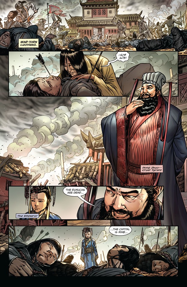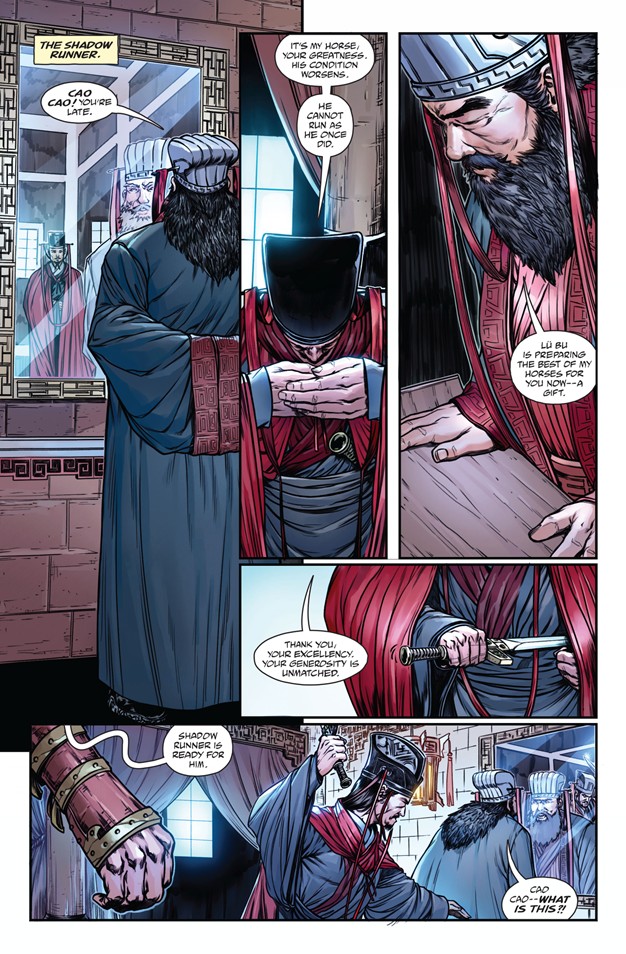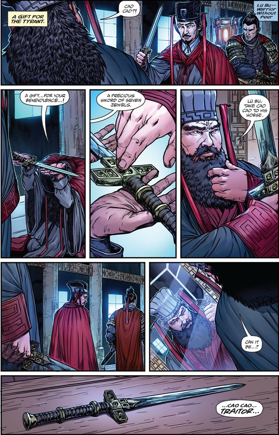 《全面战争:三国》官方公布了一组新的“三国”历史题材官方漫画,故事的还原和绘本的设计都非常还原,但是三国猛将之一的吕布却只是在漫画中短暂出现。漫画的故事讲述了,东汉末年董卓专权,扶植傀儡汉献帝,独霸专权,肆虐残暴,于是王允为首的东汉文官集团就想办法要除掉董卓,于是便出现了曹操借七星宝刀刺杀董卓的故事。