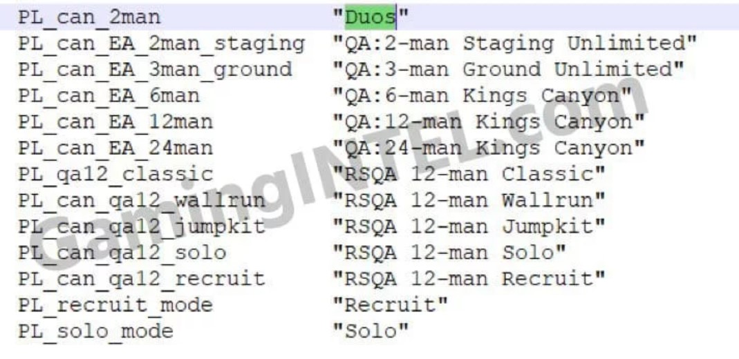 根据文件上的名字,看起来其中一些大型团队游戏模式可能是限时提供,可能和《堡垒之夜》中的限时活动差不多。不过《堡垒之夜》的50v50模式很混乱,但同时也带来了一些不同的玩法,因此《Apex英雄》可能会开发出适合自己的模式。