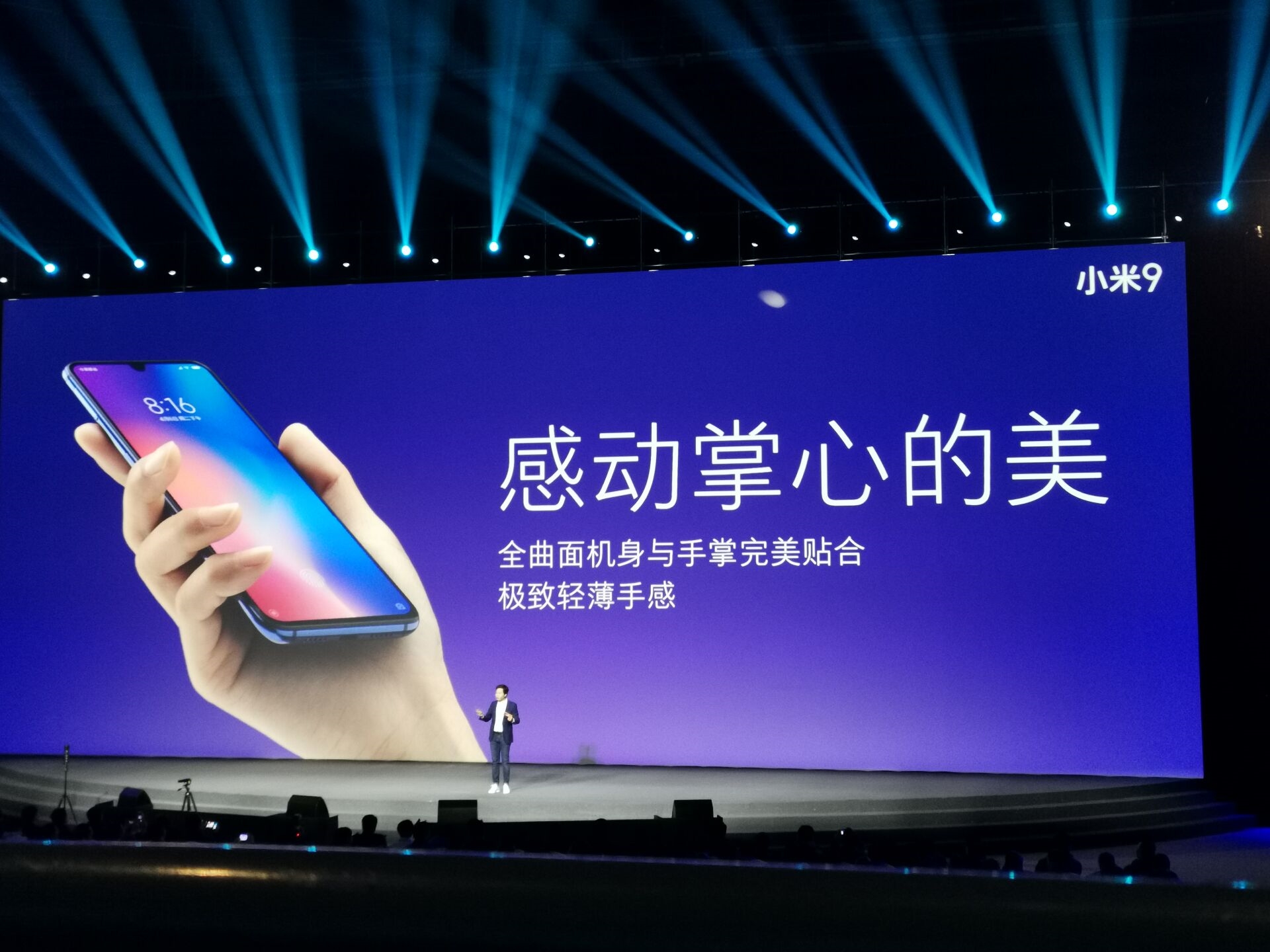 小米9机身极致轻薄,重量仅173g,作为对比,iPhone XS Max为208g,机身薄至7.61mm,全曲面机身,没有一个平面,与手掌完美贴合。雷军直言,小米9的美感动掌心。