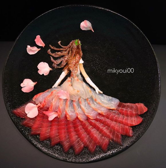 日本刺身艺术爱好者mikyou十分擅长摆盘,各种鱼刺身在他的手下变成了艺术品,让人舍不得吃。