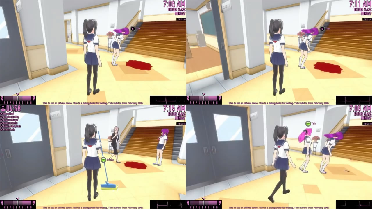 首先,NPC变得更加聪明了,学生们现在可以发现被丢弃的武器、血泊和残肢,并且对此作出一定的反应。之前只有主角Kokona可以采取的行动,现在学校里每个学生都可以使用。