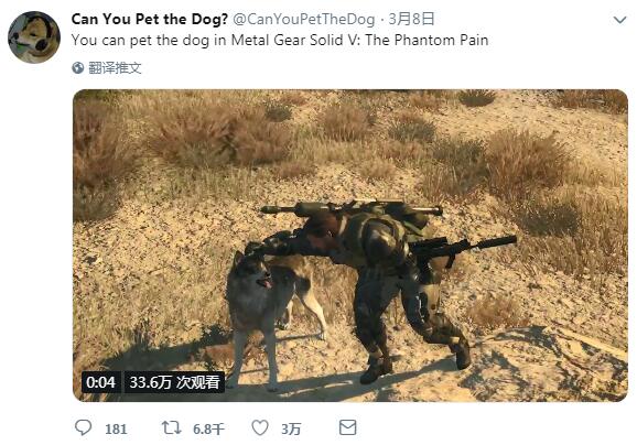 该账户的帖子简单粗暴分为两种:一种是告诉你在这款游戏中能够与狗狗亲密接触,比如下面这条《合金装备5:幻痛》的: