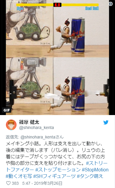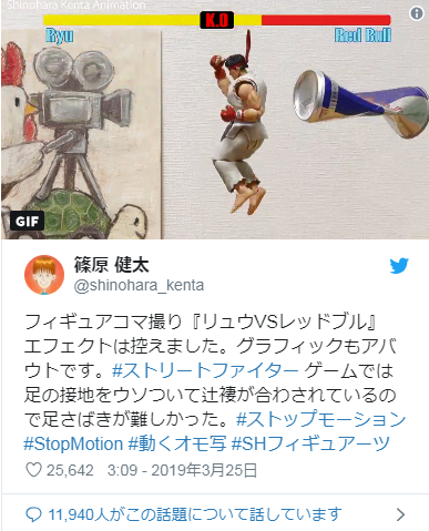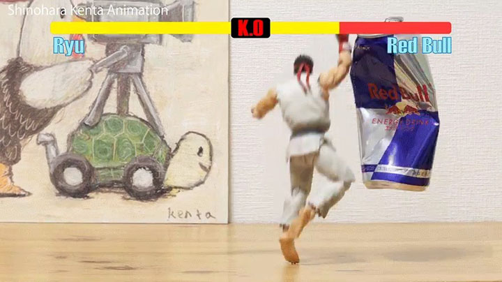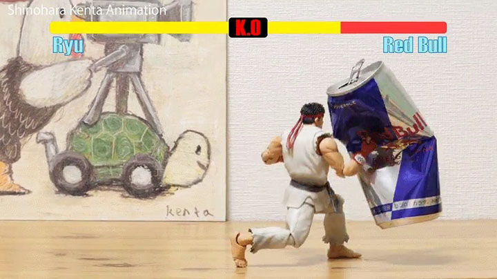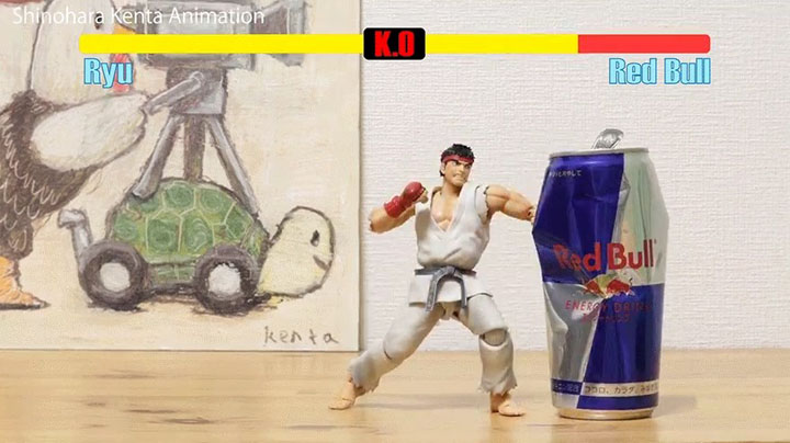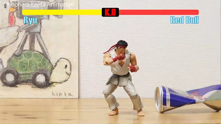 ·这位玩家名叫篠原健太(@shinohara_kenta),他使用了来自《S.H.Figuarts》系列的可动手办“龙”将游戏中的“龙”的动作一帧一帧还原,打造了这个定格动画短片,看起来动作流畅衔接毫无破绽,随着升龙拳的飞起,红牛易拉罐应声倒下!