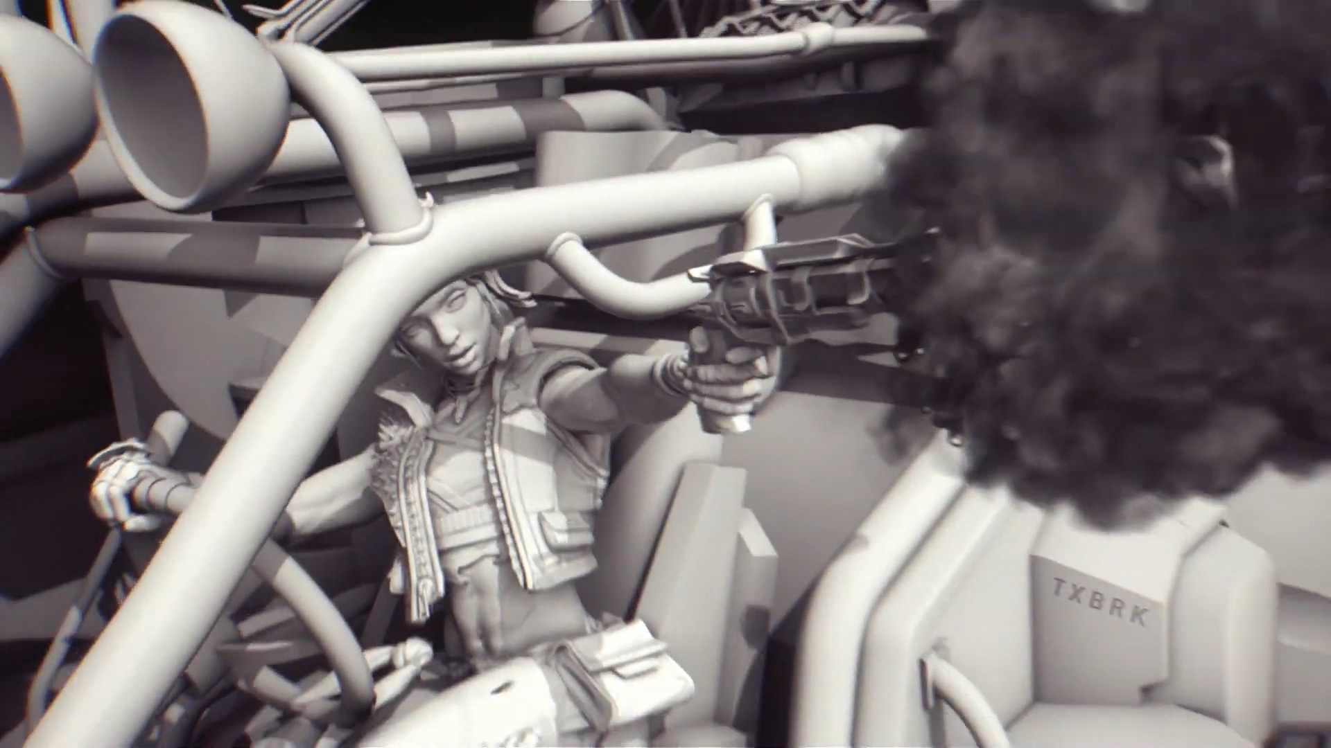 另一个角色便是Gearbox曾在虚幻4《无主之地》技术Demo中展示的女性。她能召唤一个其他玩家可以驾驶的“熊机甲”。类似于《泰坦陨落》那样,机甲从天而降。