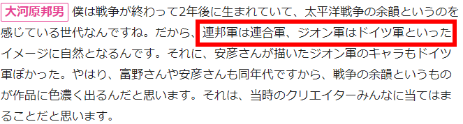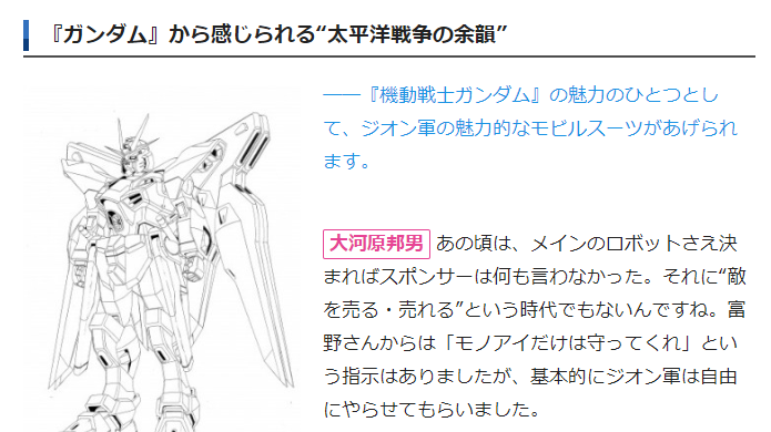·从《高达》(早期系列)能够不由得感到“太平洋战争的余音”。