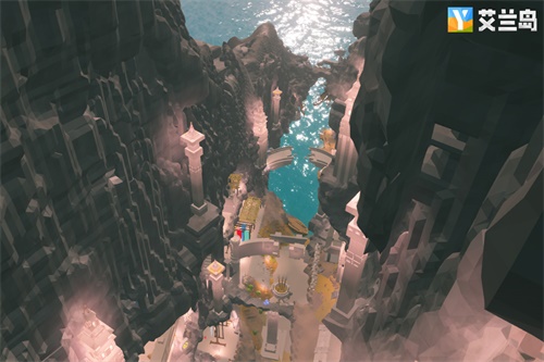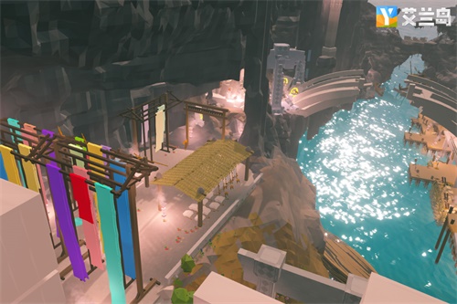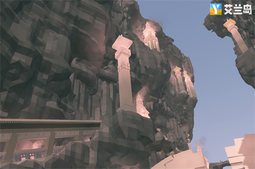 《白塔涧》这一作品巧妙利用山涧地形构建的大型场景,给人一种梦境般的感觉。特别是在白塔涧的洞穴场景,洞口漂浮着几只破败的船只,暗示着这里曾经有人来过,似乎也传递着这里有一种未知危险的信号。整个建造格局以石头为主,恰好弥补了建筑设计给人的距离感。