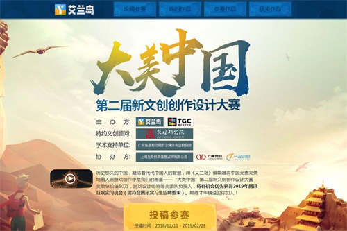 “大美中国”第二届新文创创作设计大赛由《艾兰岛》和腾讯游戏文创联合主办,敦煌研究院担任特约文创顾问,广东省高校动画数字媒体专业教指委为大赛学术支持单位,上海龙奇教育信息咨询有限公司、“广佛地铁”、“一起求职”为协办方,专业规划赛事进程,确保赛事专业度和影响力。大赛旨在引导数字媒体相关专业院校学生积极参与创作实践,促进学生创意能力和设计制作技术;挖掘优秀的艺术作品创作设计者,为我国文化产业的大发展奠定坚实的人才基础。