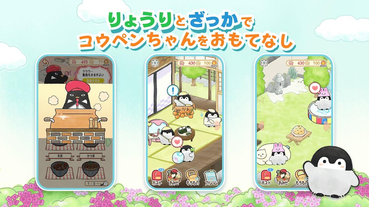 「コウペンちゃん」是日本画师「るるてあ」创作、以企鹅宝宝为题材设计的角色,推出过漫画、动画、也推出不少周边,在日本相当受欢迎。游戏中有大量收集元素,除了与「コウペンちゃん」一起休闲过日外,更可以收集达成不同的目标,甚至邀请朋友来家中游玩!