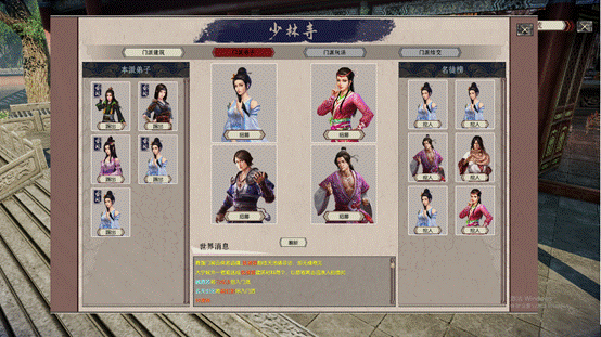 正式版中共有门派23个,且不同门派各具特点,玩家可以通过门派经营,招募弟子等提升其门派地位,增强门派属性,从而成为武林盟主,统领江湖。
