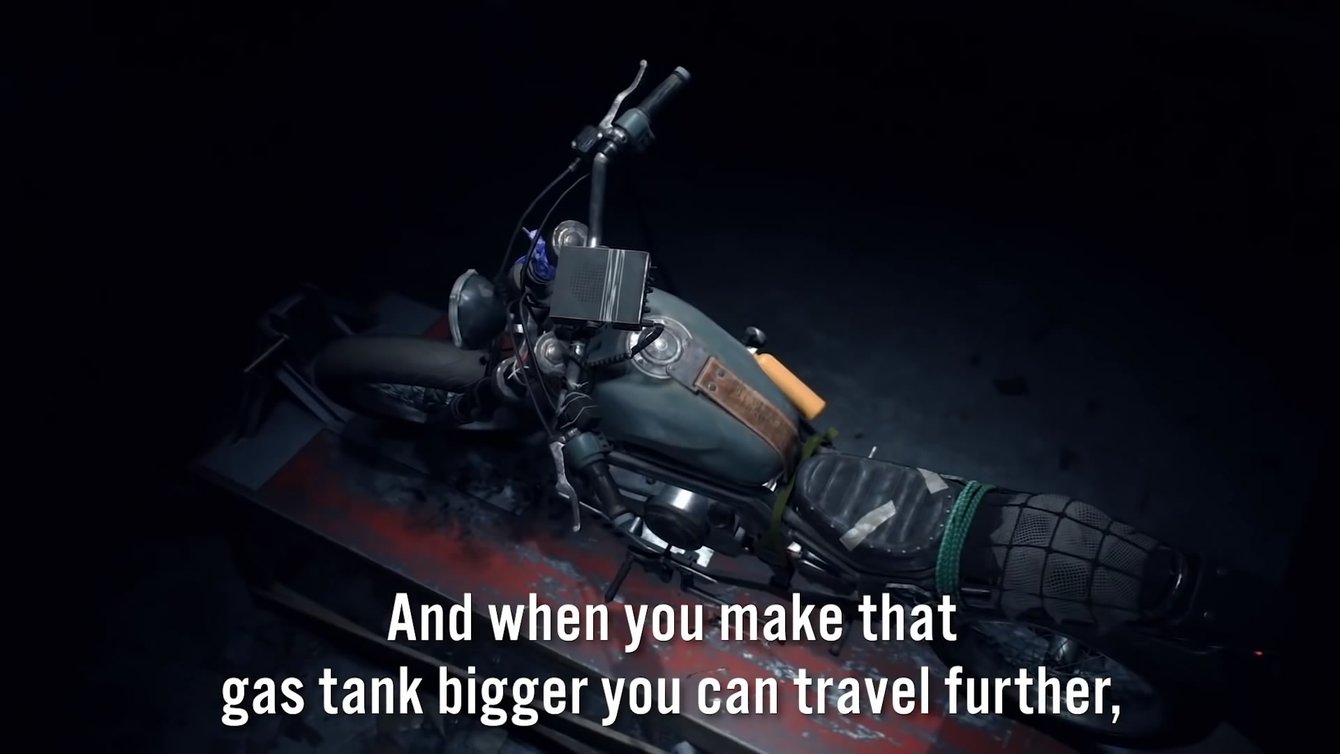 视频中的高级动画师表示,玩家需要时刻搞清楚自己的处境,分析周围的状况来做出最好的决策,同时游戏的开放世界虽然很美,但是也潜藏着各种危险,与很多开放世界游戏有所不同的是,玩家经常会处劣势并处于险境之中。因此玩家需要灵活使用机车来躲避危险,与敌人展开作战。而且,机车与法外狂徒这两者结合在一起实在是再合适不过了。
