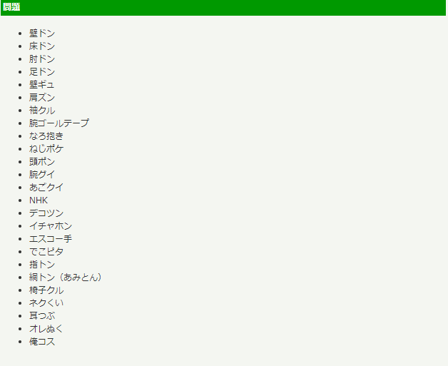 壁ドン:壁咚。知名度最高的撩妹大杀器,前提是你得比妹子或汉子高大许多。