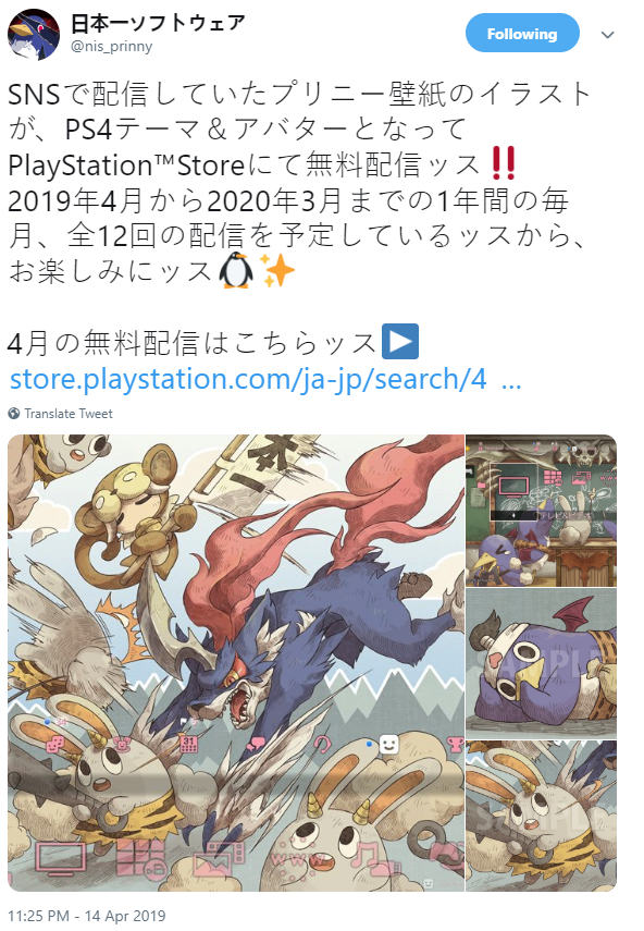 根据《魔界战记》系列开发商日本一的推特消息,在2019年4月~2020年3月期间,将会每月免费提供《魔界战记》吉祥物“普利尼”的PS4主题和头像。