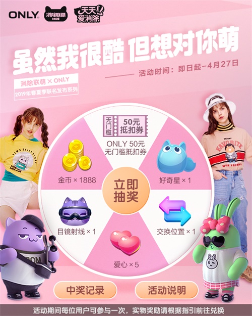 《天天爱消除》是拥有4亿玩家的国民级超萌手游,作为雄霸手机屏幕六年的经典消除类手游,用户群体不可小觑,其旗下的虚拟偶像天团“消除联萌”亦拥有线上超大曝光量与丰富的粉丝资源,而ONLY作为连续多年蝉联天猫双十一销售额第一的品牌,拥有2000多家时装零售店,更曾取得漫威、迪士尼、百事、粉红豹、加菲猫、史努比等多个国际知名IP的授权,系列跨界产品深受用户追捧、线下零售场所分布广泛。本次合作将成为综合跨界、新零售等多元因素的整合营销模式和典型案例!