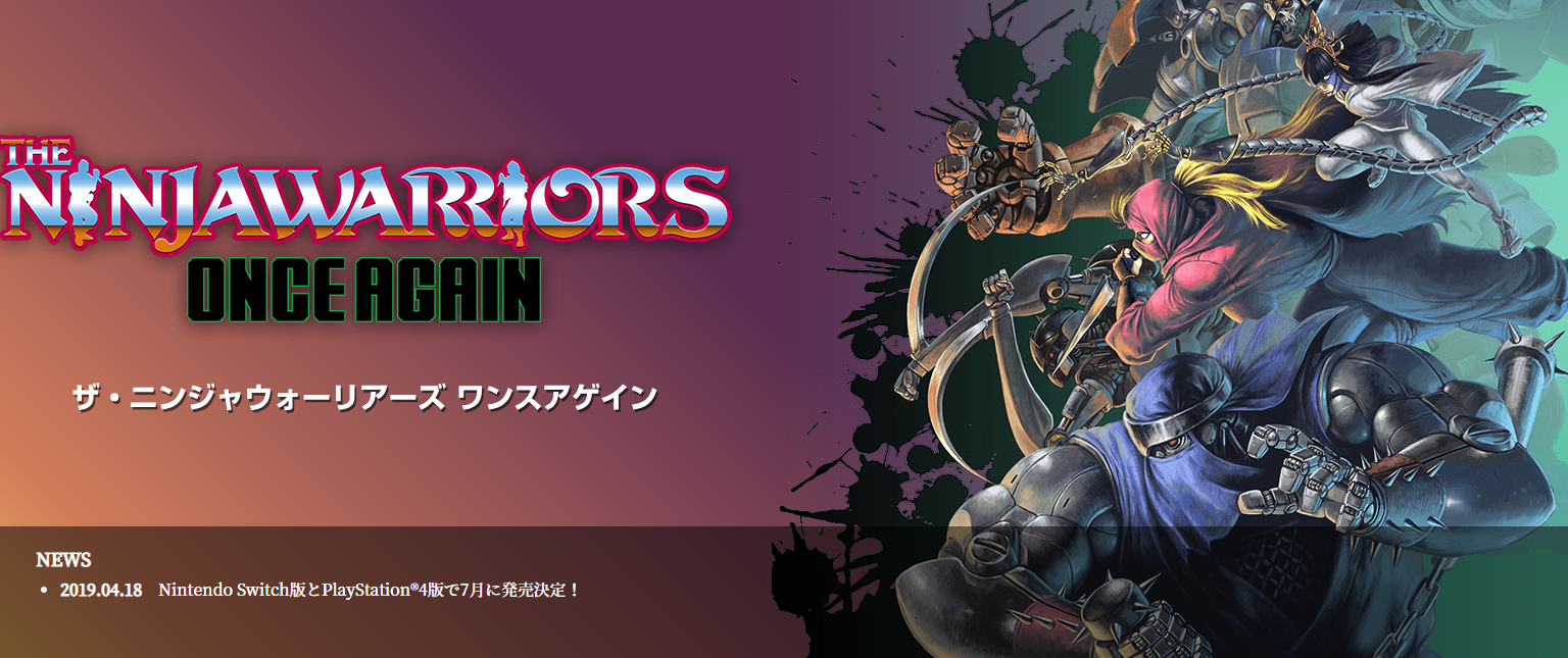 根据开发商“太东(Taito)”官网公布的最新消息,由 Taito 在1987年推出的横版街机格斗游戏《忍者战士(The Ninja Warriors)》的续作《The Ninja Warriors Again》将推出重置版《忍者战士:Once Again((The Ninja Warriors:Once Again))》,并与今年的7月登陆PS4和Switch主机平台。