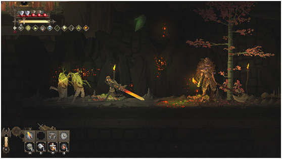 《黑暗献祭》是一款2D横向卷轴的ARPG游戏,游戏的战斗模式在开发者的开发视频中有过描述,借鉴了黑魂的一些元素,可以说与黑魂十分相像,但是区别于黑魂的开放环境,《黑暗献祭》只有在局限的环境内进行战斗,对操作和战斗范围的把控更加重视。场景探索方面在根本上借鉴了恶魔城的设计元素,游戏氛围更是吸取了各类艺术画与哥特怪诞风的艺术形式。