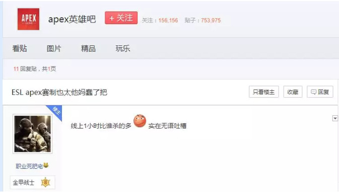 虽然是条件所迫,但Apex的赛制还是太过于天方夜谭了,更是有贴吧网友直言“太TM蠢了吧”。