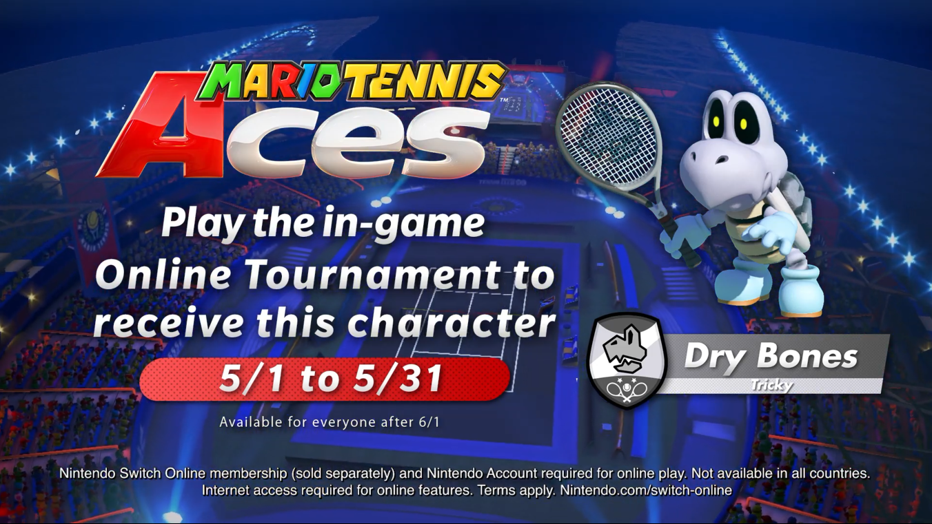 任天堂在公布的宣传视频中,演示了骷髅鬼的各项能力。从视频中可以看出骷髅龟非常灵活,技巧击球的速度很快;特殊击球的演出也很有趣,骷髅龟会将自己分裂成各个部分,瞬移到击球路线上发动进攻,真的是一名非常强力的新角色。据悉,玩家可以在5月1日-5月31日期间参加在线锦标赛模解锁骷髅龟,6月1日之后将免费提供给所有玩家。