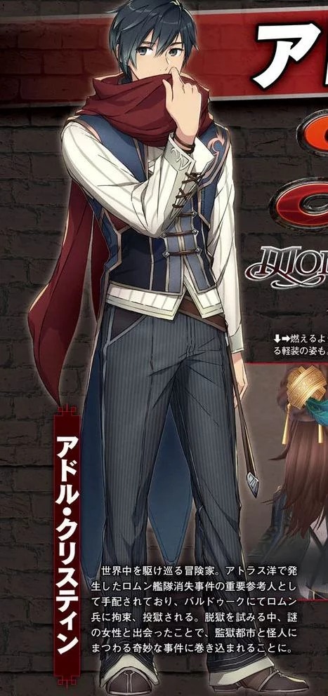 首先,该系列的传统主角亚特鲁·克里斯汀在本作中样子与以往有些不同。他在本作中被囚禁于Bardeuk监狱,并试图越狱。被囚禁的时间里他结识了一名神秘的女人并卷入了一系列包含怪人的事件中。亚特鲁看上去比之前的作品显得更成熟一些,发色也变成了黑色,可能是监狱生活相当辛苦。亚特鲁的老搭档多奇也会出现。