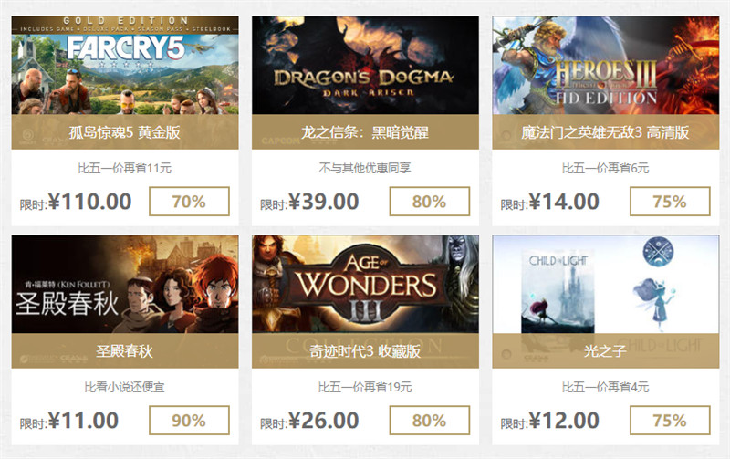 今天是杉果春促第四天,中午12点又有6款限时折扣游戏更新,其中除了《孤岛惊魂5黄金版》和《龙之信条:黑暗觉醒》等名作好价之外,改编自全球销量上亿的畅销小说《圣殿春秋》的同名冒险游戏现在仅售11元,比Steam史低价低了29元。今日几款限时折扣游戏详情如下:
