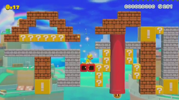 在视屏中展示了游戏中的三个部分,首先是用初代《超级马里奥》制作的“昭和”关卡,第二个是用《超级马里奥世界》制作的“平成”关卡,最后是用《超级马里奥3D世界》制作的“令和”关卡。