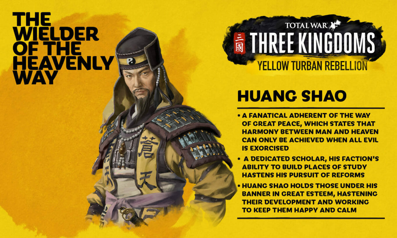 CA的最新作品《全面战争:三国》即将于5月23日正式发售,此前官方曾经公布了12位势力主公,今日官方又公布了一位新的势力主公——黄邵。黄邵是黄巾军起义将领之一,割据汝南与颍川一带,后被李典生擒,为曹操所杀。