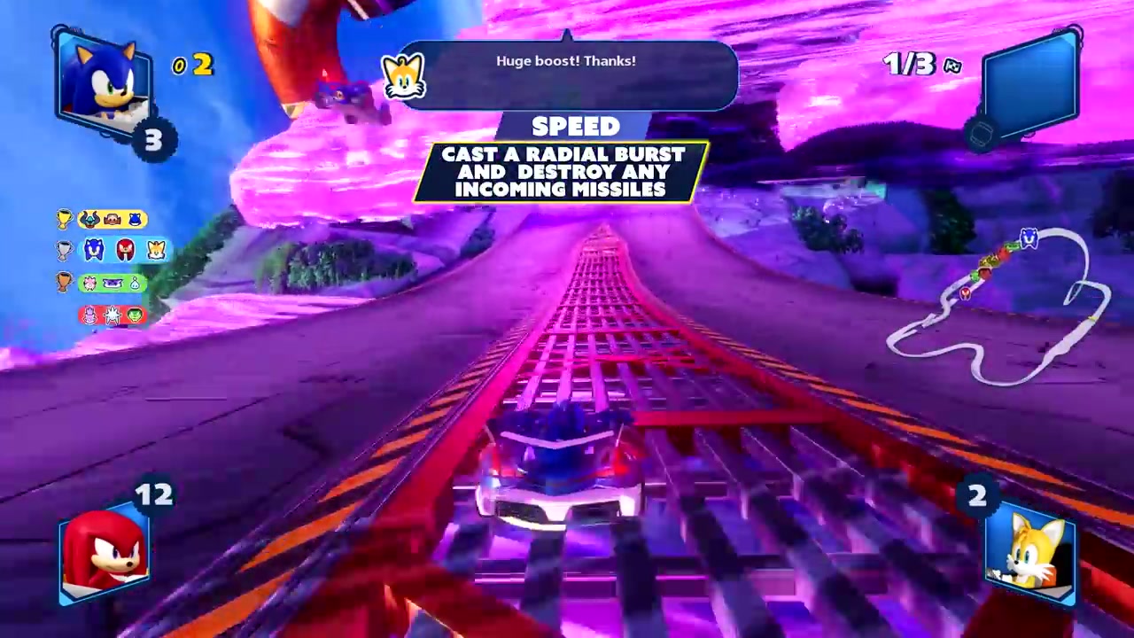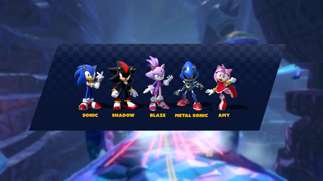 我们从速度型开始,包括索尼克,夏特,火焰猫,金属索尼克, 艾咪。之后是力量型,包括比谷、纳克鲁斯、扎沃克、贝库特和欧米加。最后还有技巧型,包括蛋头博士、起司、希尔弗、塔尔斯和露姬。