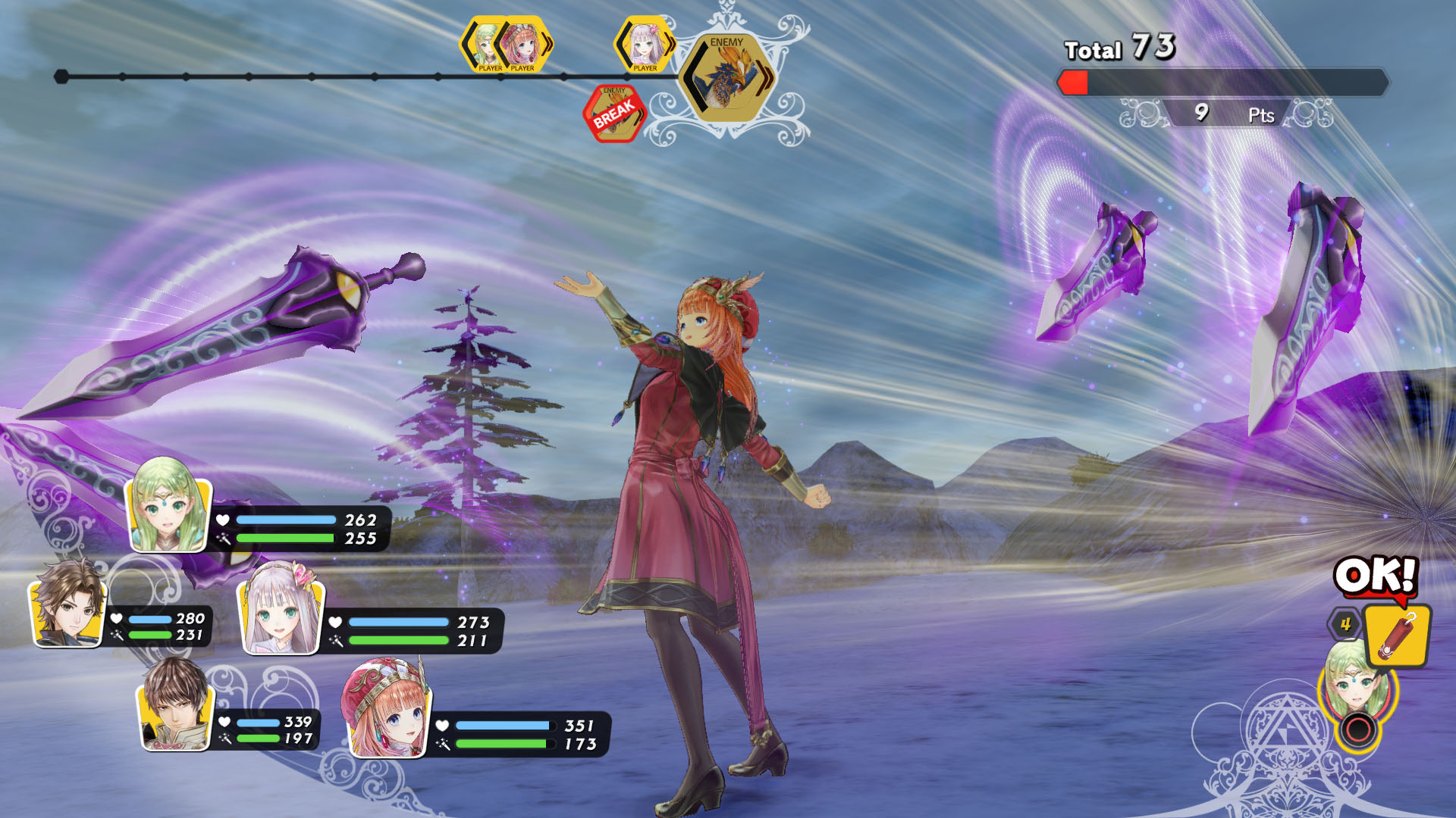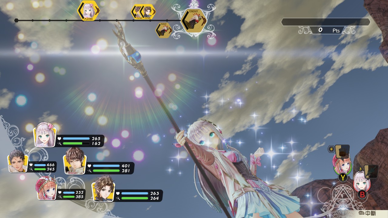 本作的战斗无论是一直有玩“亚兰德”系列作品与近年作品的玩家,或是初次接触“炼金工房”系列的玩家都可以开心游玩,以及前作《莉迪与苏瑞的炼金工房:不可思议绘画的炼金术士》深受好评的搭档战斗为基础,更加深化。请多关注搭载新要素的“中断”与“原初武技”的战斗系统!