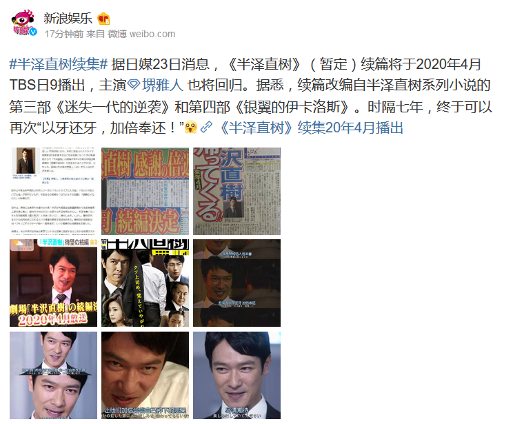 《半泽直树》(暂定)续篇将于2020年4月TBS日9播出,敬请期待。