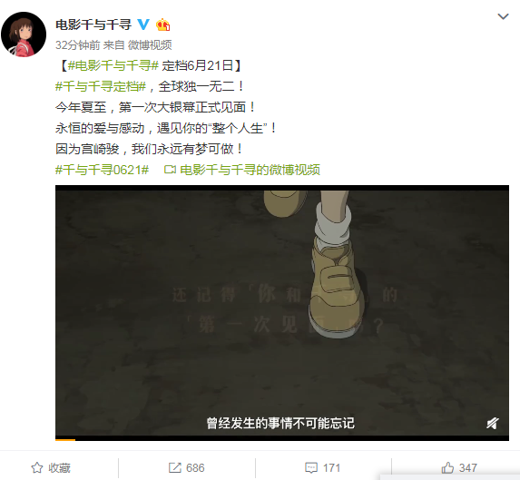 据动画电影《千与千寻》官方微博5月23日今天最新报道,宫崎骏导演动画电影《千与千寻》确认于中国内地6月21日上映,同时最新感动中字预告放出,一起期待下。