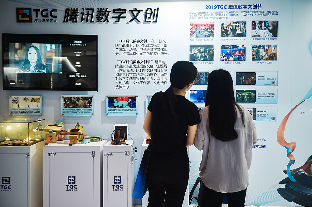 在腾讯全球数字生态大会上,数字文创还开设了主题展区,《王者荣耀》、《地下城与勇士》、《穿越火线》、《天涯明月刀》系列、《QQ炫舞》、《NBA2KOL2》、腾讯棋牌、腾讯“追梦计划”、腾讯游戏学院、成长守护平台、玩家创意联盟等产品及业务,共同展示在新文创战略下,腾讯打造中国文化符号的项目案例:包括基于敦煌传统游戏制作的纸板互动小游戏、《王者荣耀》敦煌“飞天”皮肤设计的细节解析、展现中国传统榫卯结构的《榫卯》、《天涯明月刀》系列与国家级非遗传承人马福良大师合作打造的花丝镶嵌头饰以及《QQ炫舞》与腾讯音乐集团合作推出的国风民韵音乐试听,等等。