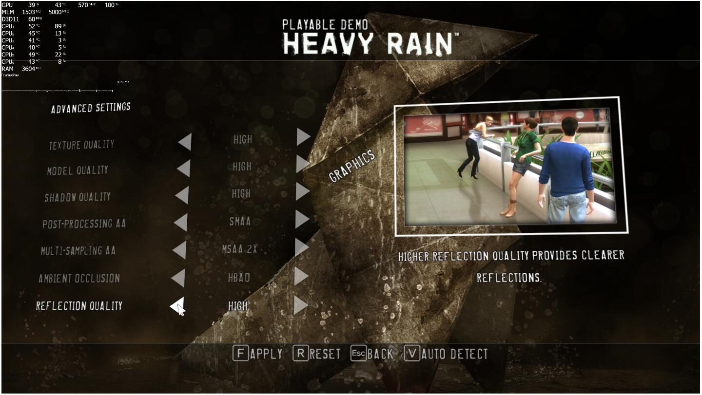 《暴雨》(Heavy Rain)PC试玩Demo上架Epic商店,外媒Dsogaming使用RTX 2080Ti运行测试了该作,一起来看看吧!