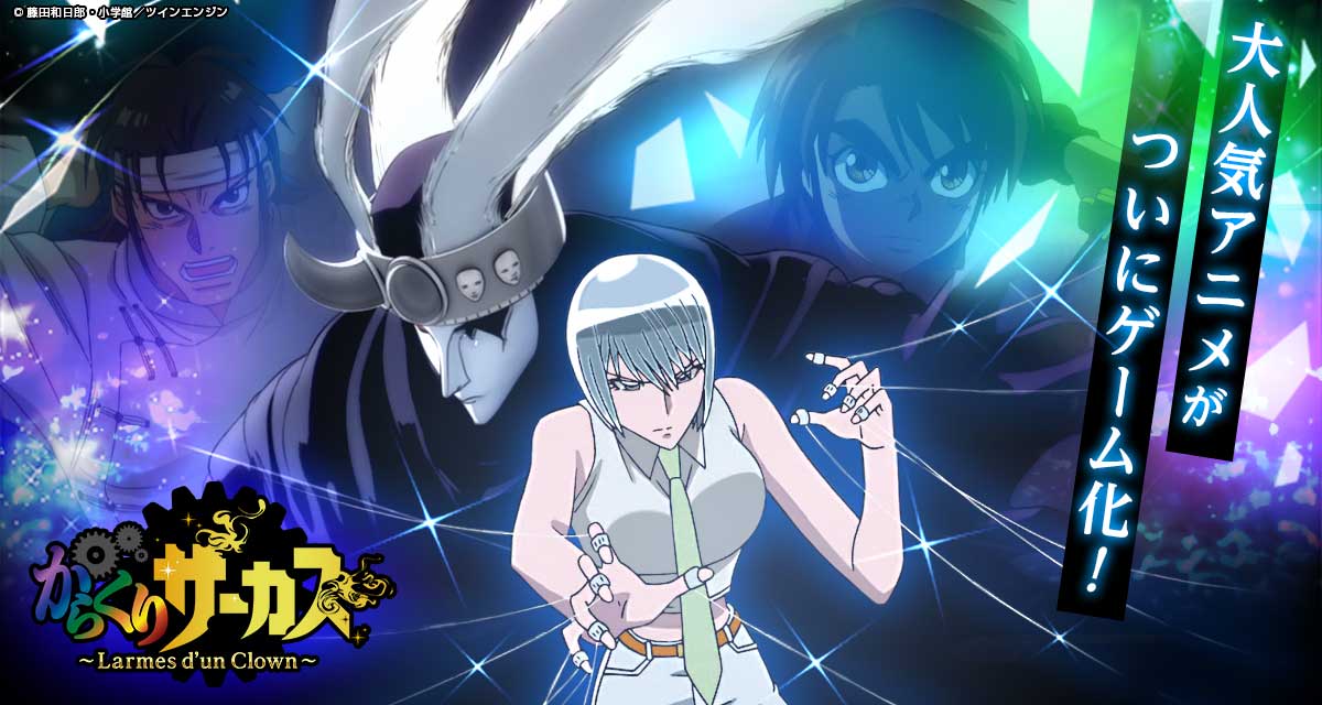 《傀儡马戏团~Larmes d'un Clown~》是改编自发行数达1500 万部的人气少年漫画《傀儡马戏团》的卡牌游戏,游戏已经在众多官方APPS 平台率先登场,并预定于5 月28 日登上App Store 与Google Play 商店推出。
